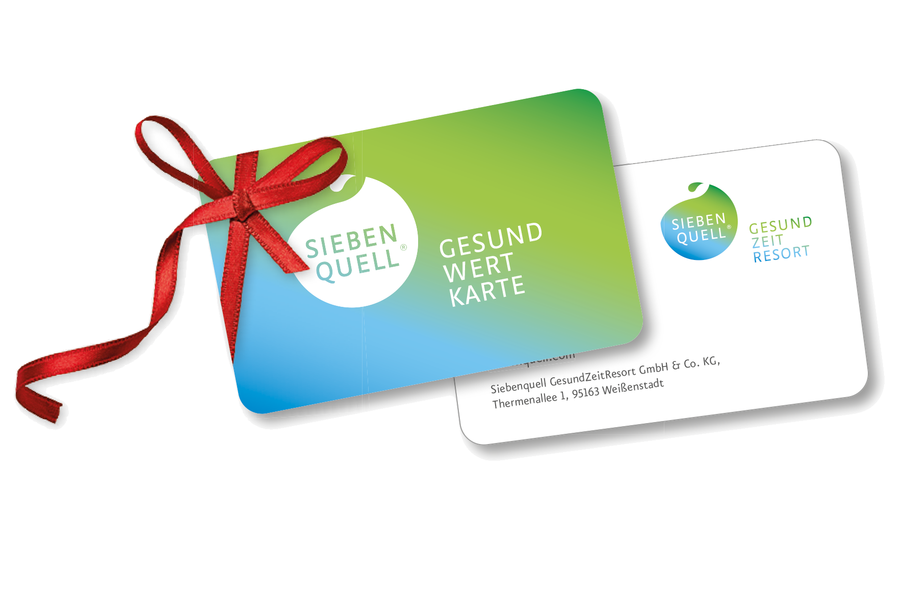 Bezahlen Sie bargeldlos im Siebenquell GesundZeitResort und sparen Sie dabei! Die GesundWertKarte ist ab einem Mindestverkaufswert von € 20,- erhältlich. Ab € 100,- Aufladung erhalten Sie attraktive Rabatte auf jeden Eintritt in die Wasser- und Saunawelt sowie in die GesundZeitReise und Tageseintritt in das Fitness-Studio. Mit Ihrer GesundWertKarte können Sie im gesamten Resort alle Eintritte, Leistungen, Hotelaufenthalte und gastronomischen Angebote begleichen.